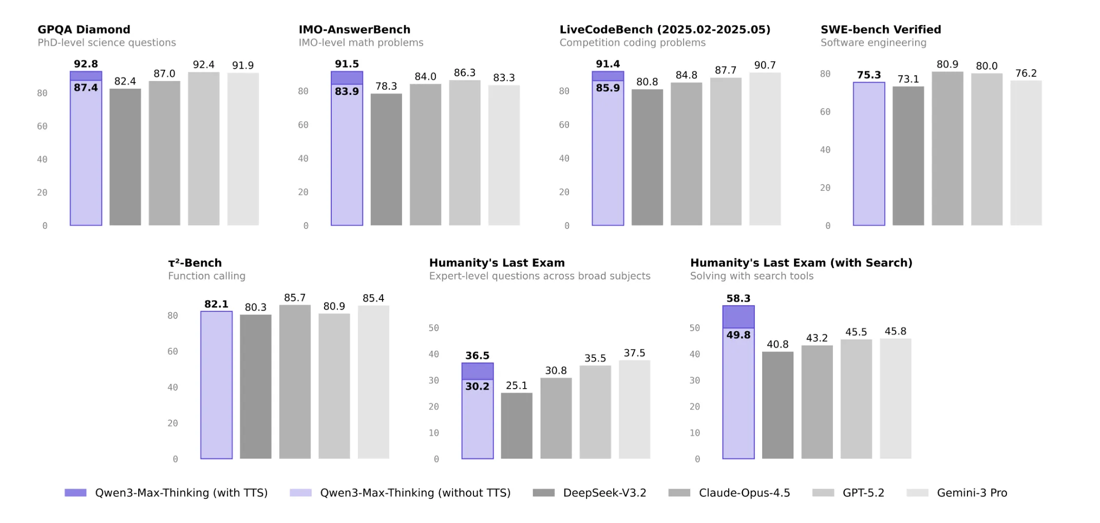 - Qwen3-Max-Thinking integrates Search, Memory, and a Code Interpreter as native tools and uses Adaptive Tool Use so the model itself decides when to browse, recall state, or execute Python during a conversation.