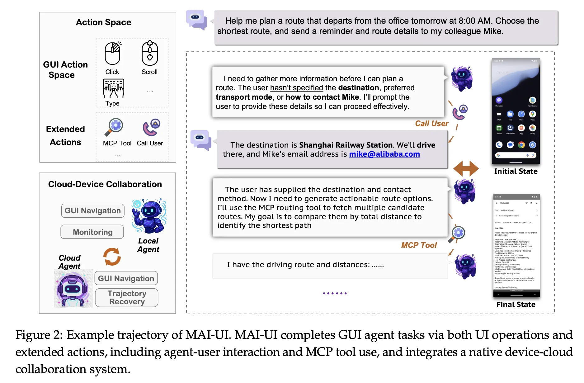 Alibaba Tongyi Lab have released MAI-UI—a family of foundation GUI agents. It natively integrates MCP tool use, agent user interaction, device–cloud collaboration, and online RL, establishing state-of-the-art results in general GUI grounding and mobile GUI navigation, surpassing Gemini-2.5-Pro, Seed1.8, and UI-Tars-2 on AndroidWorld. The system targets three specific gaps that early GUI agents often ignore, native agent user interaction, MCP tool integration, and a device cloud collaboration architecture that keeps privacy sensitive work on device while still using large cloud models when needed.