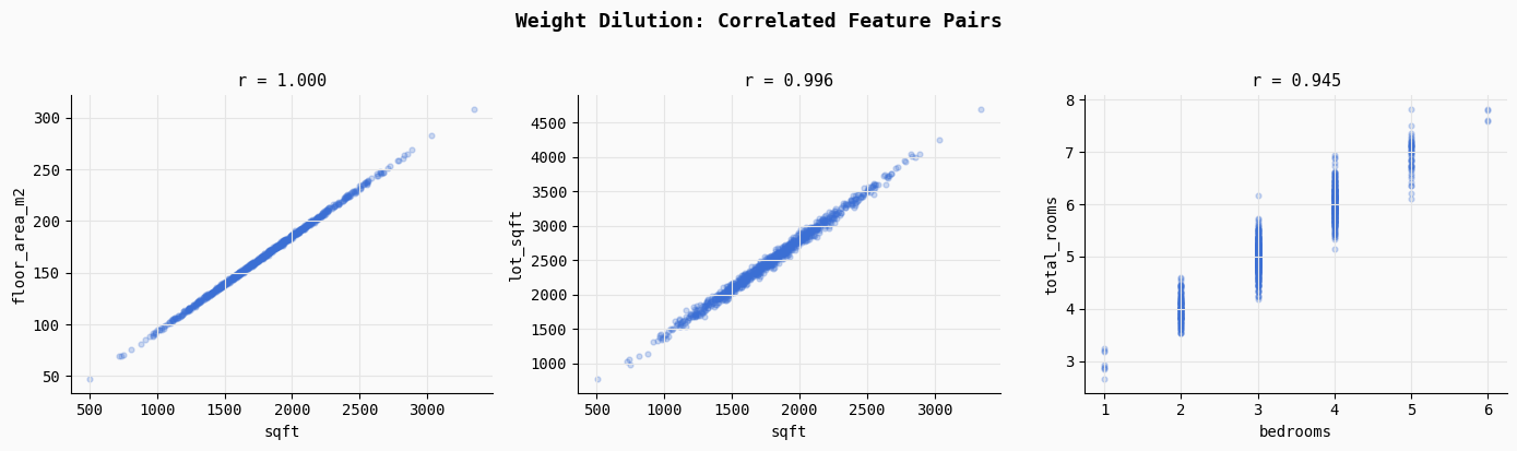 fig.suptitle("Weight Dilution: Correlated Feature Pairs",