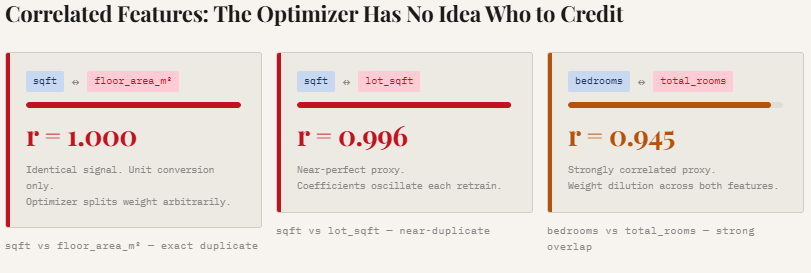 In this article, we will examine why adding more features can make regression models less reliable rather than more accurate. We will explore how correlated features distort coefficient estimates, how weak signals get mistaken for real patterns, and why each additional feature increases production fragility. To make these ideas concrete, we will walk through examples using a property pricing dataset and compare the behavior of large “kitchen-sink” models with leaner, more stable alternatives.