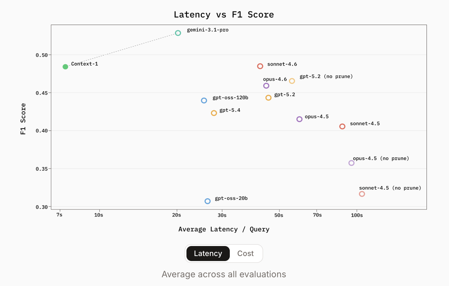 Across public benchmarks like BrowseComp-Plus, SealQA, FRAMES, and HotpotQA, Context-1 demonstrated retrieval performance comparable to frontier models that are orders of magnitude larger.