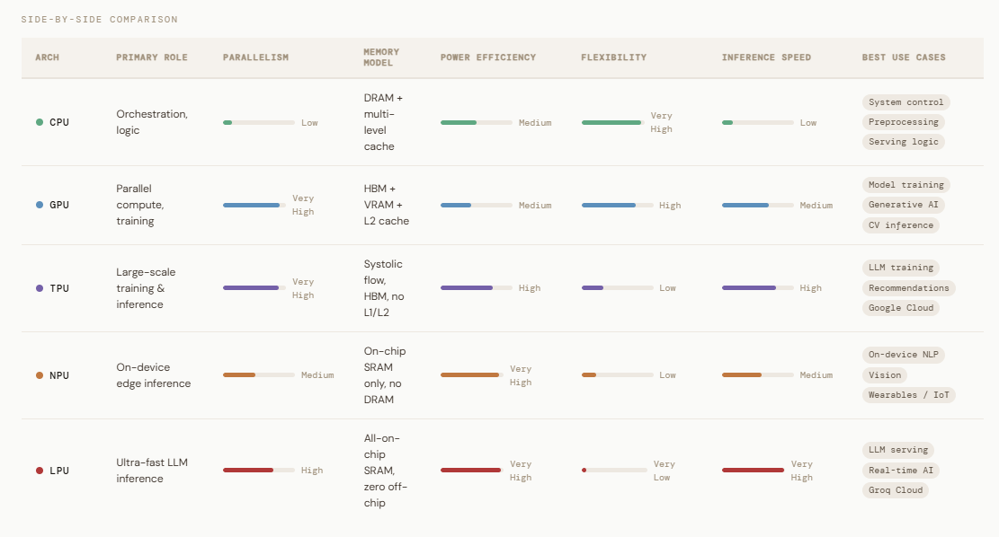 Emerging innovations like Groq’s LPU further push the boundaries, delivering significantly faster and more energy-efficient inference for large language models. As enterprises shift from general-purpose computing to workload-specific optimization, understanding these architectures has become essential for every AI engineer.