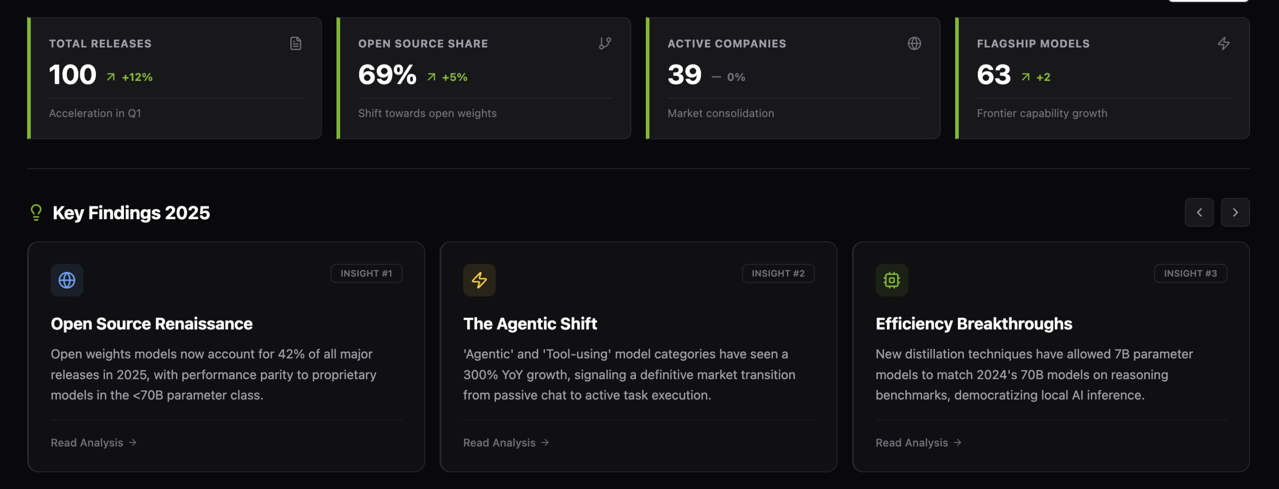- Ecosystem indexes, including curated “Top 100” collections that connect models to papers and the people and capital behind them. This release includes dedicated sections for: