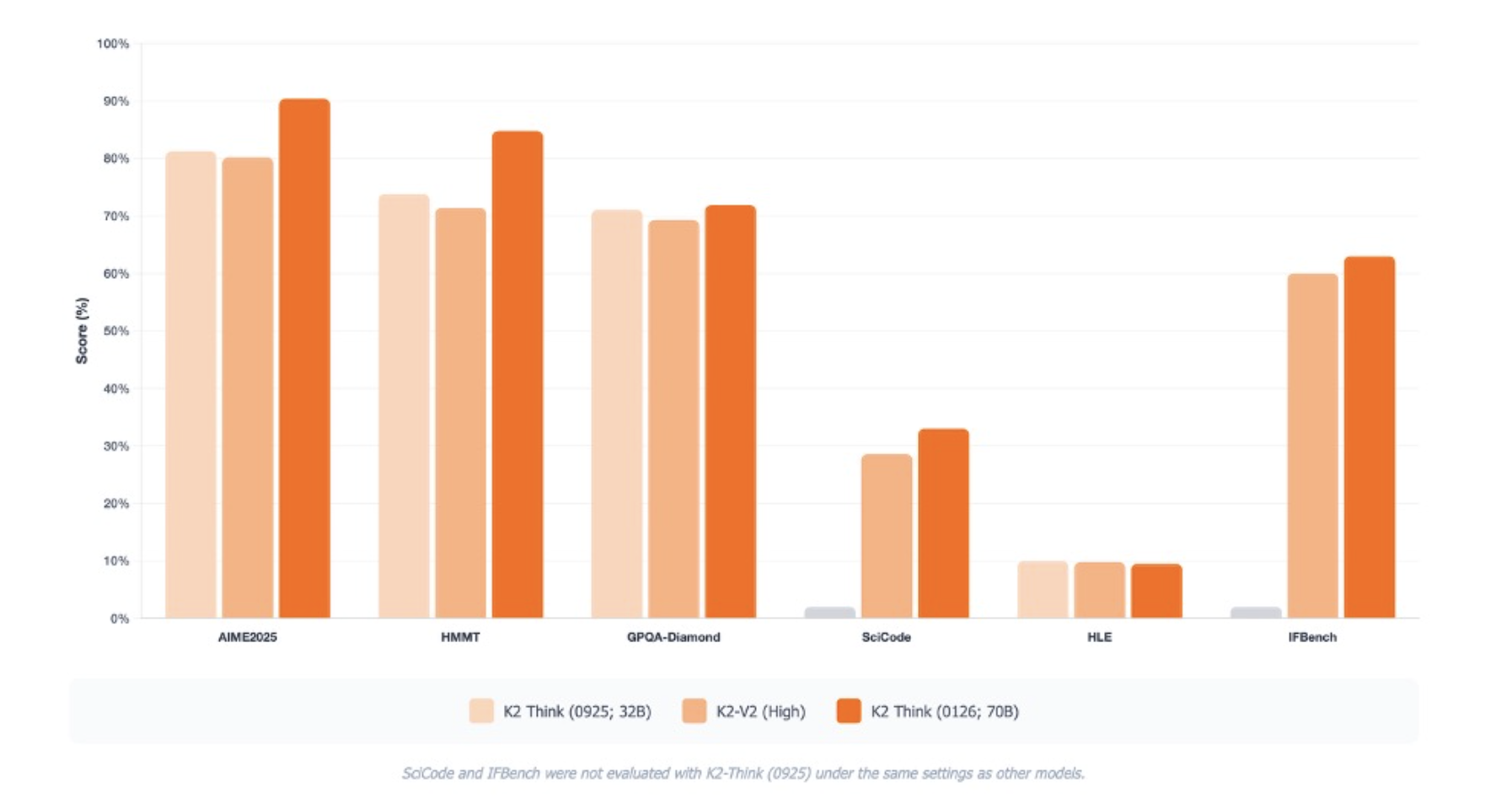 - Competitive results on hard reasoning benchmarks: K2 Think V2 reports strong pass at 1 scores such as 90.42 on AIME 2025, 84.79 on HMMT 2025, and 72.98 on GPQA Diamond, positioning it as a high precision open reasoning model for math, code, and science.