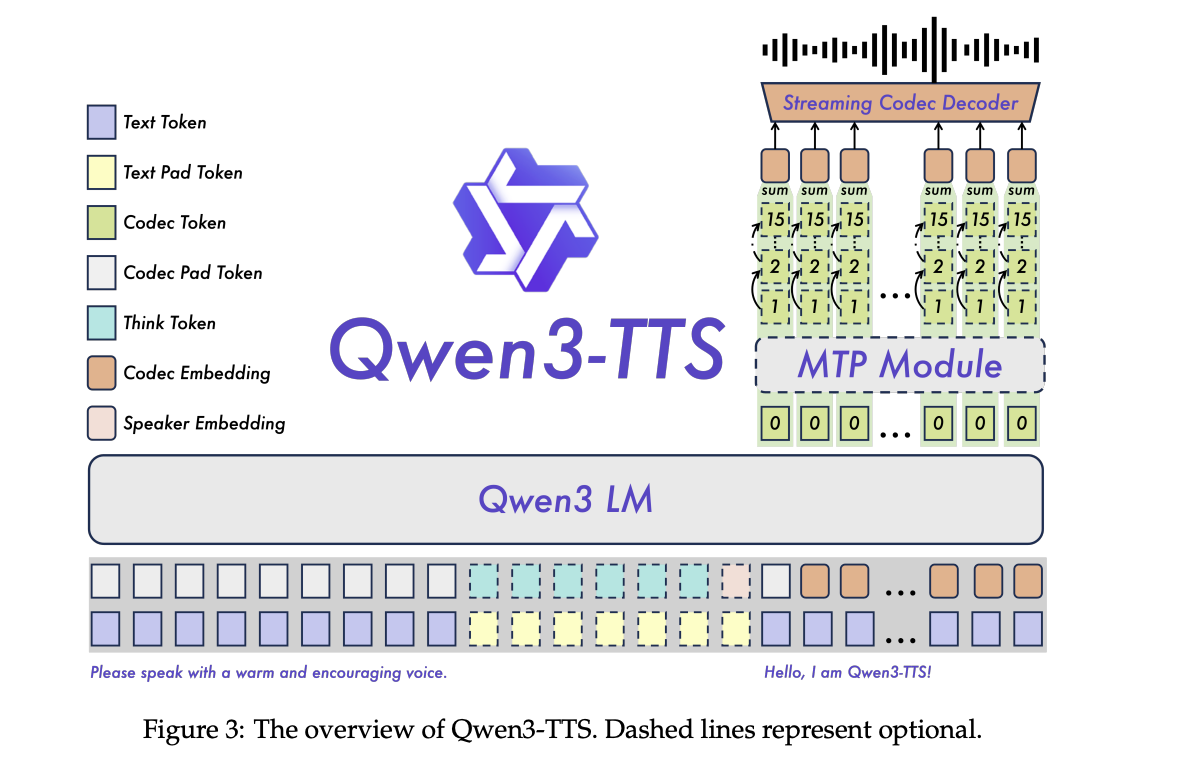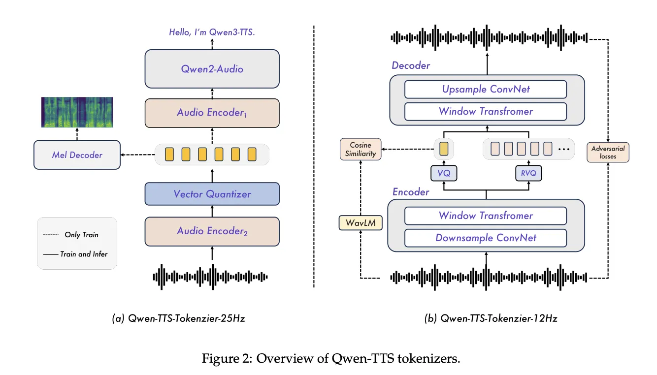 - Efficient discrete codec and real time streaming: The Qwen3-TTS-Tokenizer-12Hz uses 16 codebooks at 12.5 frames per second, reaches strong PESQ, STOI and UTMOS scores, and supports packetized streaming with about 320 ms of audio per packet and sub 120 ms first packet latency for the 0.6B and 1.7B models in the reported setup.