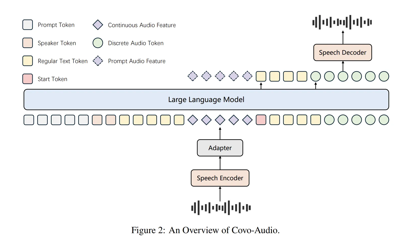 - Audio Adapter: To bridge the encoder and the LLM, a specialized adapter employs three downsampling modules, integrating linear and convolution layers to reduce the frame rate from 50 Hz to 6.25 Hz.