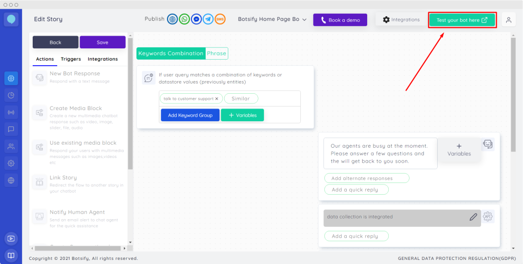 Go ahead and ask your chatbot a quick question to see how well it responds!
