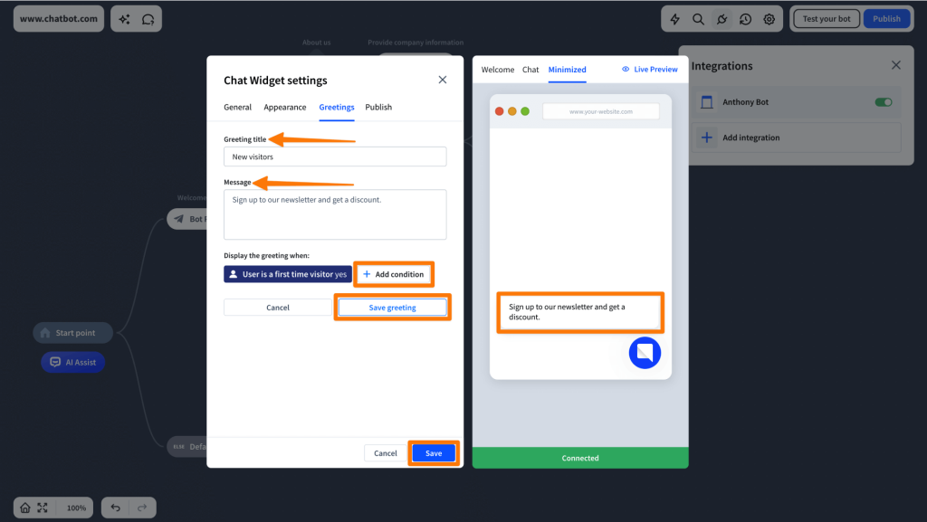 Congrats! You’ve just built an insurance chatbot that can engage visitors, answer their questions, and provide instant support!