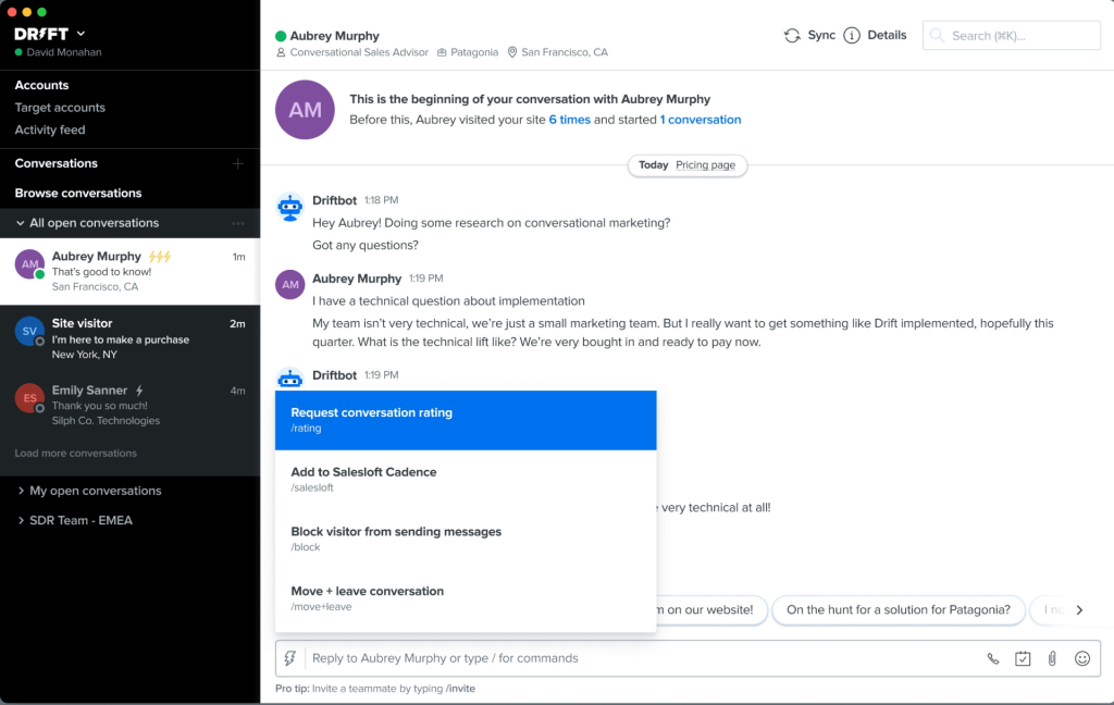 Drift is ideal for creating engaging conversational landing pages that capture and qualify leads in real time. It can instantly collect visitor information, provide real-time insurance quotes, and answer policy-related questions, making it easier for potential clients to get the information they need. The chatbot also supports meeting scheduling, reducing the workload for agents.