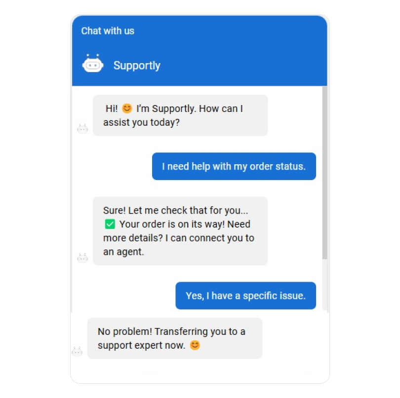 Chatbot responses can be customized to ask feedback-related questions, helping gather valuable performance insights to improve services and customer experience. This can be done after specific interactions or at regular intervals.
