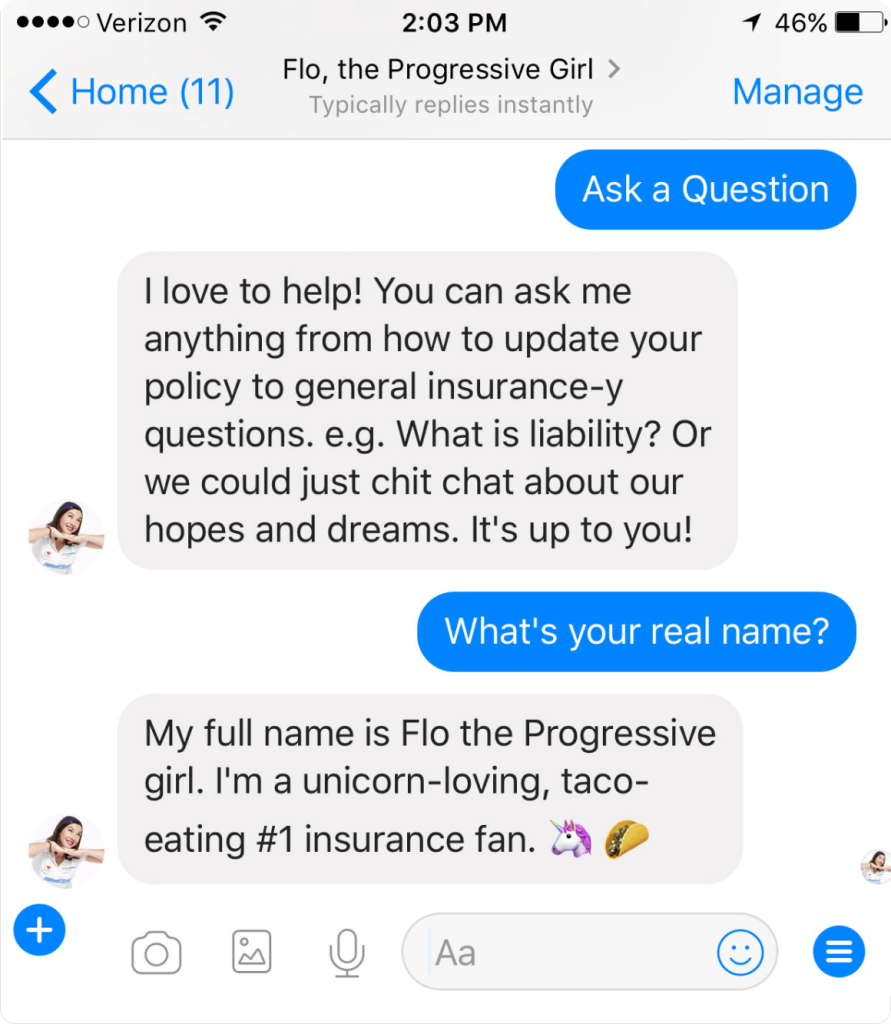 Progressive’s chatbot, named Flo, offers an easy and efficient way to handle claims. Flo helps customers report accidents, track claims status, and provide them with relevant updates, all via automated interactions.