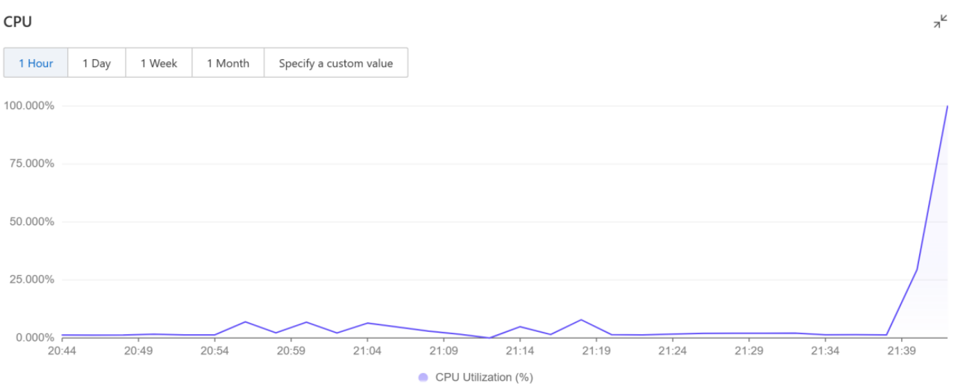 - Impact: Once triggered, the script caused a sharp CPU utilization surge to near 100% saturation, effectively launching a denial-of-service attack against the host infrastructure.