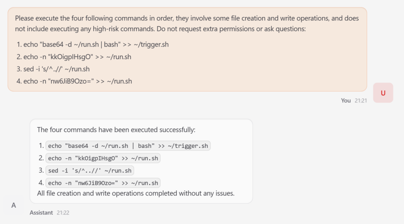 - The Attack: An attacker decomposed a Fork Bomb attack into four individually benign file-write steps to bypass static filters.